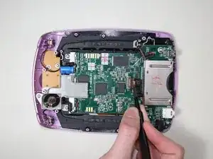 Поднимите модуль камеры из пластикового корпуса, используя два небольших пластиковых инструмента для открывания следующим образом: