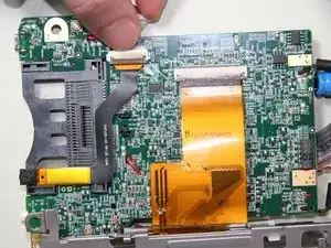 Отодвиньте ленту на разъёме ленточного кабеля дисплея.