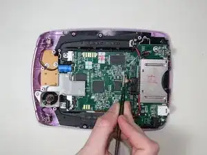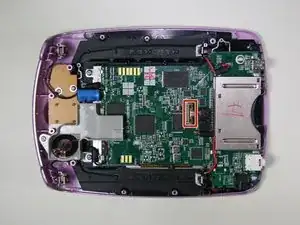 Самые упрямые защёлки, удерживающие переднюю и заднюю части вместе, расположены вдоль верхнего края планшета вокруг слота для картриджа. Это, скорее всего, будет последняя область, которая разойдётся, и для её освобождения может потребоваться умеренное усилие.