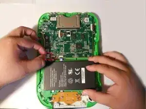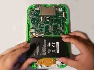 Снимите жёсткий пластиковый корпус, обнажив материнскую плату и аккумулятор.