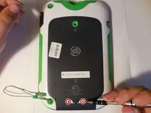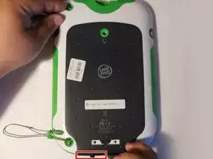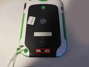 Снимите штрих‑код, закрывающий два винта на нижней задней части LeapPad.