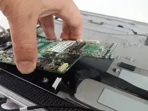 После того как все разъёмы и винты удалены, аккуратно поднимите материнскую плату из планшета.
