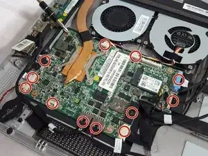 Отверткой Phillips №1 выкрутите винты M2–6 мм, фиксирующие материнскую плату в корпусе.