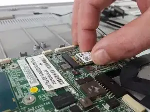 Пальцами аккуратно и медленно отсоедините показанный здесь провод от материнской платы.