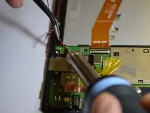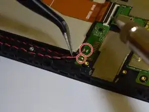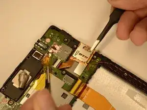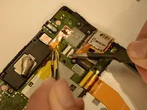 Пинцетом вытяните шлейф сенсорного экрана из материнской платы.