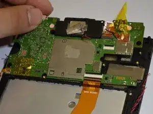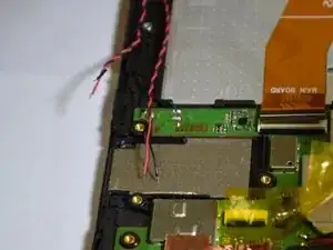Отверткой Phillips #000 удалите два винта, крепящие динамик к материнской плате.