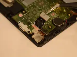 С помощью лопатки или пластикового инструмента отсоедините шлейф батареи от материнской платы.