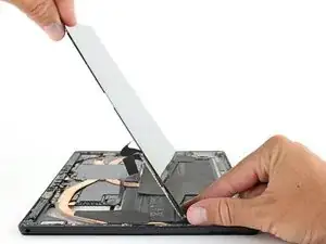 Проведите лопаткой по правому краю Surface, чтобы разрезать клей под экраном.