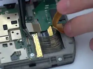 С помощью пинцета аккуратно подденьте чёрный пластиковый разъём, удерживающий кабель.