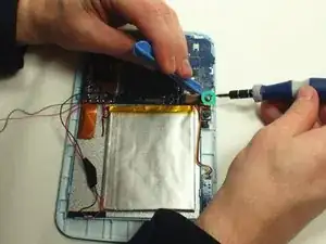 Используйте широкий пластиковый инструмент для вскрытия, чтобы медленно поддеть каждую сторону аккумулятора и приподнять её.