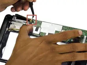 Используйте пару пинцетов, чтобы отсоединить три черные антенные кабеля от материнской платы.