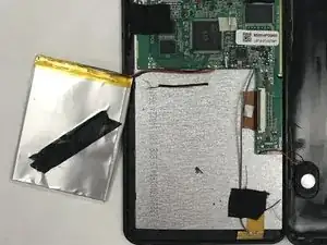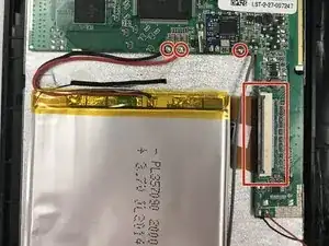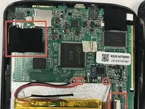Найдите и отсоедините все соединения материнской платы. Удалите соединения, оставив компоненты на местах от батареи, камеры, заземляющего провода, пластиковых соединений у разъема для зарядки и 512 МБ DDR3 SDRAM.