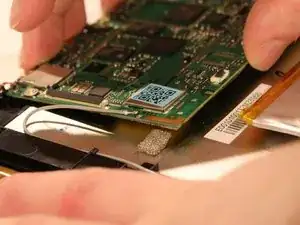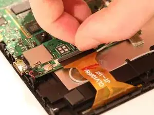 Снимите ленту с коннекторов на материнской плате и с другой стороны аккумулятора.