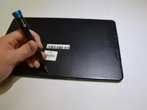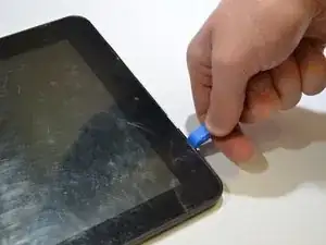 Используйте инструмент для вскрытия, чтобы снять заднюю крышку планшета. Для этого вставьте инструмент между экраном и боковой частью планшета.