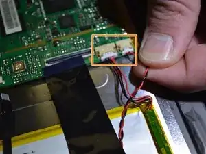 Аккуратно приподнимите материнскую плату с задней части планшета.