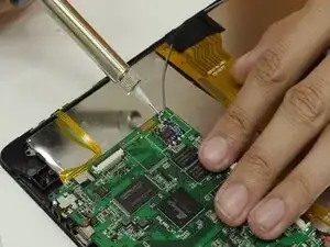 Прикоснитесь паяльником к каждому выводу аккумулятора и оттяните вывод от платы.