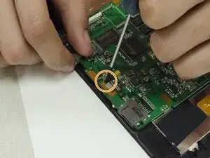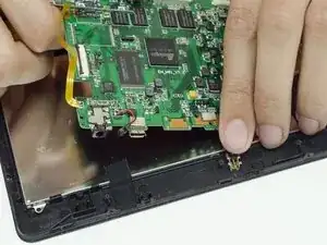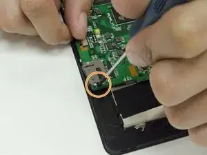 Удалите два винта Phillips #00 на боковой стороне планшета.