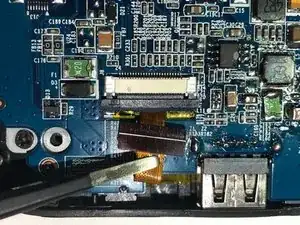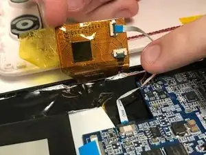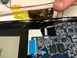 Отогните сенсорный интерфейсный чип (находится в верхнем правом углу материнской платы, покрыт жёлтой лентой).