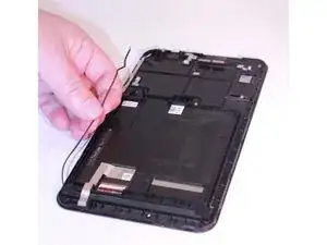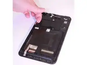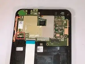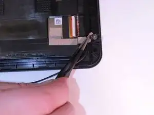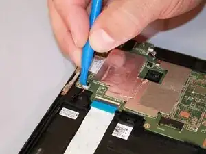 Найдите белый разъем кабеля с левой стороны планшета, вставленный в черный порт на материнской плате.