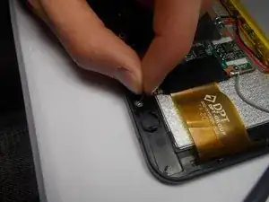 Чтобы установить крышку обратно, просто защёлкните её на место и вставьте два винта. Поскольку динамик не полностью зафиксирован внутри корпуса планшета, убедитесь, что он расположен так, чтобы поместиться в монтажное гнездо динамика на крышке.