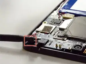 Используя черную лопатку, вставьте конец под красные и черные провода. Аккуратно поднимите микрофон из его гнезда.