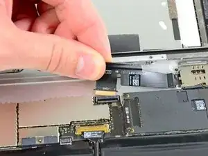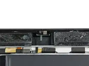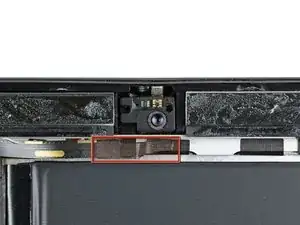 Антенна прикреплена к нижней части iPad винтами и кабелем. Этот шаг отсоединяет антенну от передней панели, обеспечивая её сохранность при снятии панели.