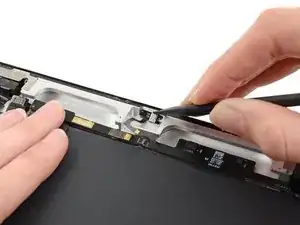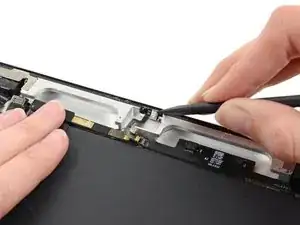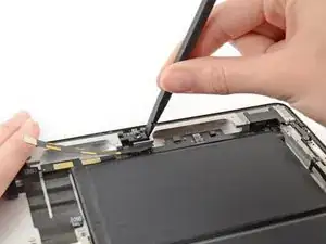 Вам нужно будет освободить клей, фиксирующий антенну к передней панели, не повредив тонкие части, соединяющие антенну с нижней частью iPad. Тщательно следуйте следующим шагам.