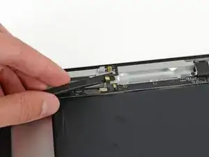 Используя пластиковый инструмент для вскрытия или лопатку, приподнимите правый край ЖК-дисплея и выведите его из корпуса iPad.