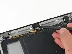 Проведите монтажную лопатку вдоль верхней кромки iPad, немного вытянув её, чтобы обойти кронштейн фронтальной камеры.