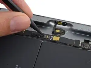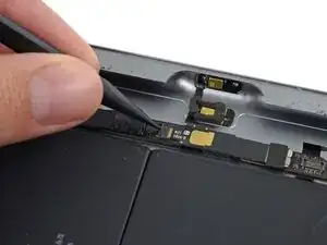 Используйте наконечник медиатора, чтобы аккуратно приподнять разъём аккумулятора от его гнезда на плате.