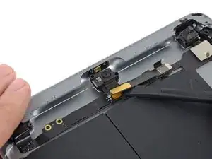Не пытайтесь полностью снимать ЖК-дисплей. Он всё ещё приклеен и подключён к iPad несколькими кабелями на стороне кнопки «Домой». Поднимайте только с конца, где находится фронтальная камера.