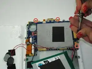 Используйте отвертку, чтобы удалить три винта Philips #00 длиной 7.0 мм и отвинтить материнскую плату.