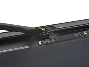 Кабели дисплея находятся примерно на полпути от нижнего края iPad. Прекратите сдвигать, как только достигнете трёх дюймов от нижнего края iPad.
