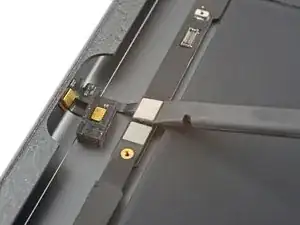 Поверните две открывающие лопатки в левых углах iPad, чтобы слегка приподнять цифроаналоговое стекло, отделяя при этом оставшийся клей.