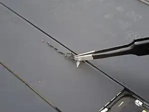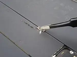 Используйте монтажный инструмент, чтобы соскоблить металлическую ленту с платы логики настолько, чтобы можно было схватить её пинцетом.