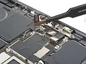 Левый кабель фронтальной камеры слегка приклеен к плате логики.