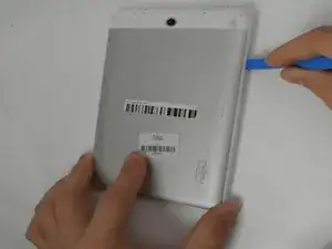 Используйте инструмент для вскрытия, чтобы аккуратно снять заднюю крышку планшета, проводя им по периметру устройства.