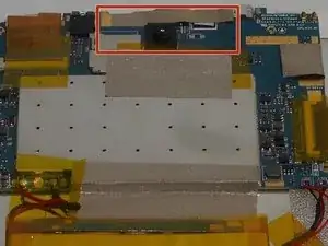 С помощью пинцета отключите шлейф, соединяющий камеру с материнской платой.