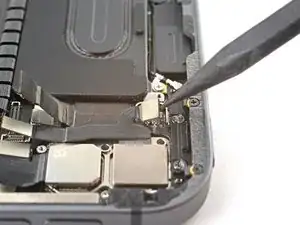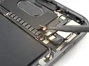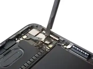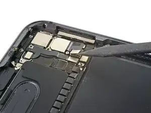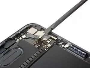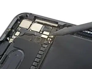 Используйте лопатку, чтобы поддеть и отсоединить плоский разъём шлейфа датчика LiDAR.