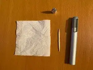Очистите внутри верхней съемной части стилуса с помощью зубочистки, обернутой салфеткой.