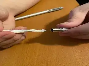 Держите стилус под углом и выкрутите верхнюю часть стилуса.