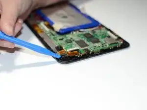 Снимите заднюю панель, поддев инструментом iFixit с четырёх сторон устройства.