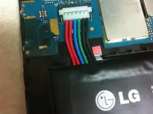 Найдите следующий разъём камеры в верхней части платы. Отсоедините этот чёрный разъём для фронтальной камеры.