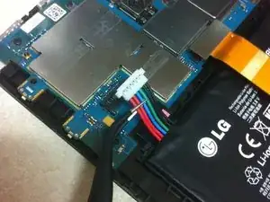 Пинцетом полностью извлеките зарядный разъём из планшета. Отложите для сборки.