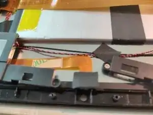 Открутите динамик (установлен в верхней части с металлическими контактами)