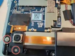 Открутите и отведите в сторону чёрный пластик, удерживающий заднюю камеру
