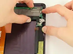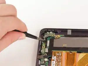 Электронная часть кнопок блокировки и громкости теперь должна быть свободной для перемещения. Аккуратно поднимите её пинцетом и отложите в сторону.