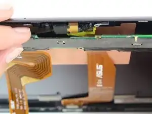 Не отделяйте экран от корпуса более чем на несколько сантиметров, так как они всё ещё соединены тремя оранжевыми ленточными кабелями.