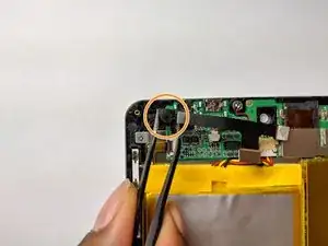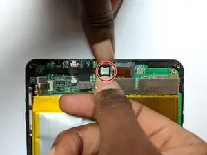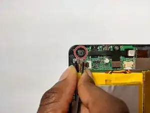 С помощью монтажного инструмента найдите прямоугольный серый разъём рядом с камерой и осторожно отсоедините его.