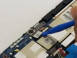 Подденьте разъём, который соединяет камеру с материнской платой, с помощью пластикового инструмента для вскрытия, как показано на фотографиях.